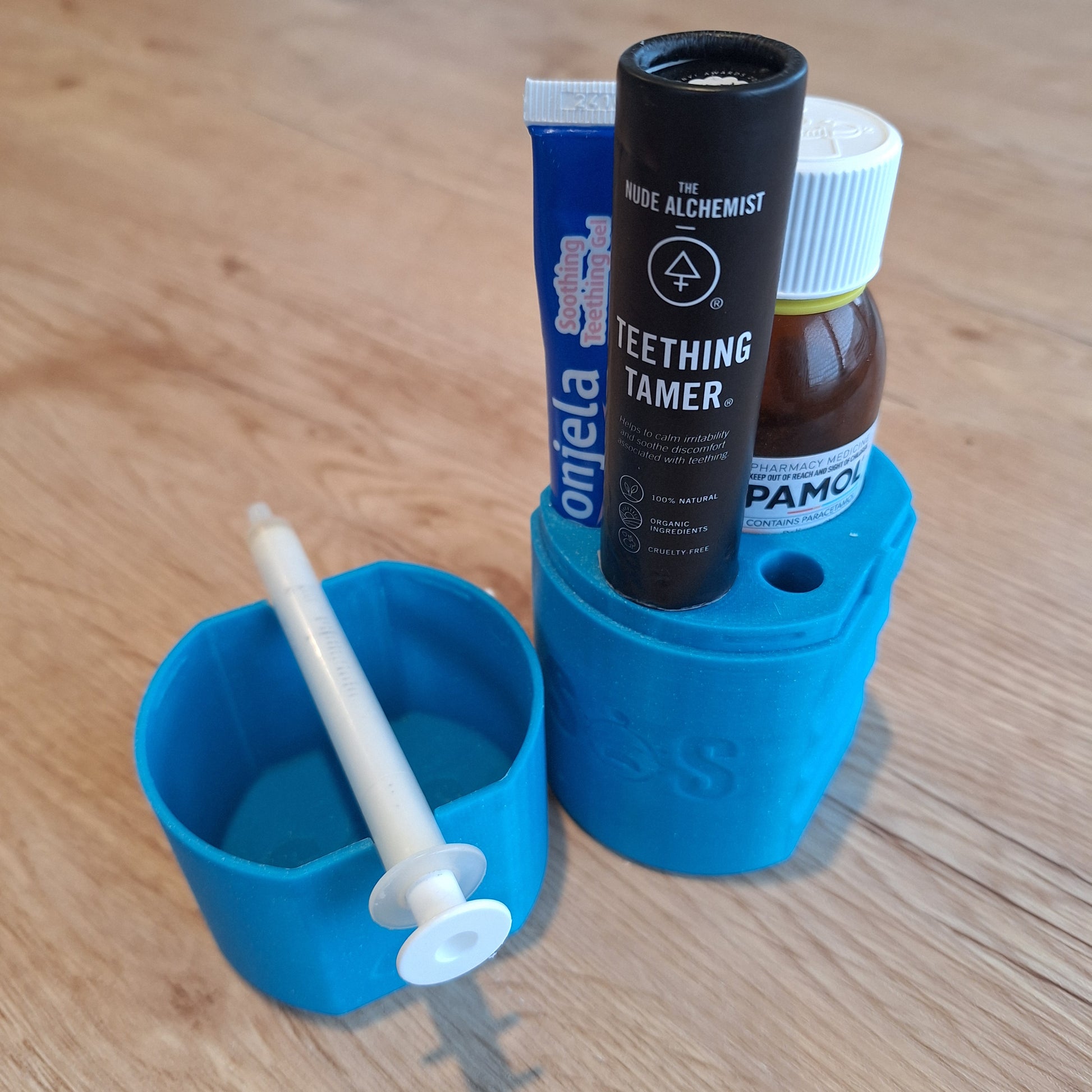 This features variable size holes to suit assorted size medicine bottles, syringes and other containers & SOS - Save Our Sanity - TRIO When your precious bundle of joy is battling the worst pains, you need to have the tools at hand. Ensure you have the SOS Travel Trio for managing babies pain and you keep your sanity!
